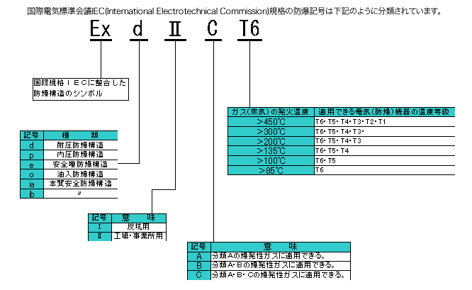 本機は国際電機標準会議(IEC)規格、即ち「新技術的基準」のExdⅡCT 6耐圧防爆及び発火等級に認定されました。本機は業界同類製品の中にトップ等級と高精度の製品であり、従来の労働省「電気機器具防爆構造規格」にも完全に対応しております。